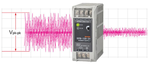The SPB series provides stable power supply my minimizing Vpk-pk (AC noise present in output voltage) value of ripple noise.