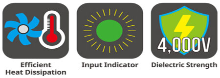 4000VAC 50/60Hz 1min. (input-output, input/output-case) |