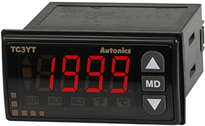 Temp Control, W72 X H36 mm, on/off - proportional, 3 digit display, relay output 16A, J, K, RTD input, 100-240 VAC
