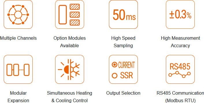 Simultaneous Heating & Cooling Control The temperature controllers can simultaneously control heating and cooling for efficient and optimal temperature control.