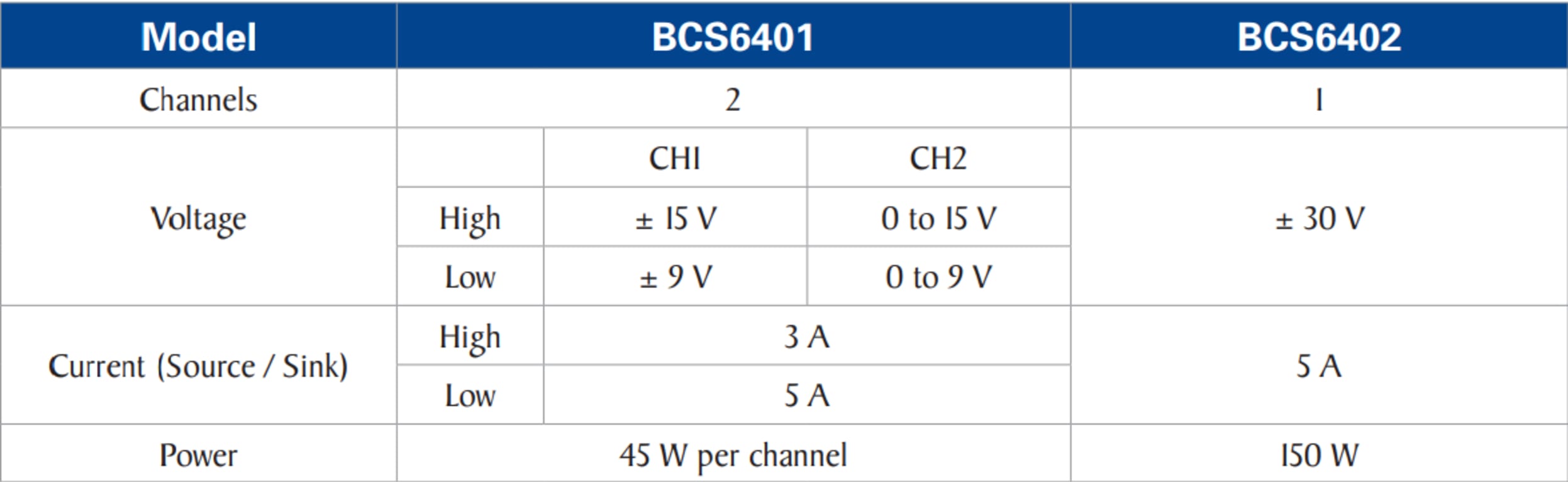 ProductBK Precision BCS6402 Single Channel DC Power Supply and Battery Charger/SimulatorBK Precision BCS6401 Dual Channel Battery Charger/Simulator and 90 W DC Power Supply