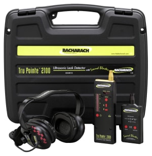 The Tru Pointe 2100 is an advanced electronic ultrasonic leak detector and condition monitor used by maintenance personnel for leak detection, preventive and predictive maintenance (PPM) and scheduled maintenance in a variety of industries. Using patented signal processing, the Tru Pointe 2100 the most accurate and repeatable ultrasonic inspection instrument in its class. Multi Purpose Ultrasonic Instrument The Tru Pointe 2100 is extremely sensitive to the "sound" of leaks and friction in commercial and industrial systems and provides the most precise readings available. The operating principle of the Tru Pointe 2100 is based on the detection and measurement of ultrasound and its conversion into audio for humans to hear using a technique called heterodyning. Ultrasound is generated in leaks, external & internal, friction in bearings & mechanisms, faulty steam traps and valves. The Tru Pointe 2100 will help locate problems by detecting the ultrasounds they generate. The first of its kind, the Tru Pointe 2100 uses two software-controlled sensors for the detection of airborne leak sounds and for the detection and location of solid-borne sounds from leaks and bearing wear. For ease of use and interpretation, the Tru Pointe 2100 has two digital LED displays - a 20-segment bar graph display with peak hold and an alphanumeric display for instrument settings and precision measurements. The Tru Pointe 2100 detects air and gas leaks in two frequency bands for isolating leaks; 26 kHz-34 kHz (low) and 34 kHz-42 kHz (high). Using the patented internal Touch Probe sensor, the instrument detects internal leaks in two ultrasonic bands; 16 kHz-24 kHz (low) and 34 kHz-42 kHz (high). Additionally, it has the capability to function like a stethoscope, using an industry-exclusive acoustic band, 0-10kHz.