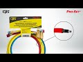 The CPS HK5NG is a convenient three-pack of ¼-inch patented 5-foot barrier hoses in red, yellow, and blue for safely and efficiently charging, recovering, and evacuating H/CFC, HFC, HFO, plus R410a, R134a, and R12234yf refrigerants in residential and commercial HVAC/R systems. The HK5NG hoses are equipped with a ¼-inch SAE female straight fitting and 5/16-inch SAE female SafeMate fitting.