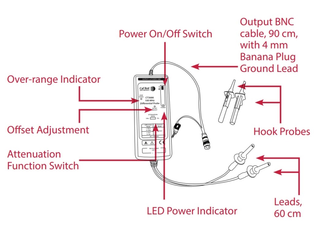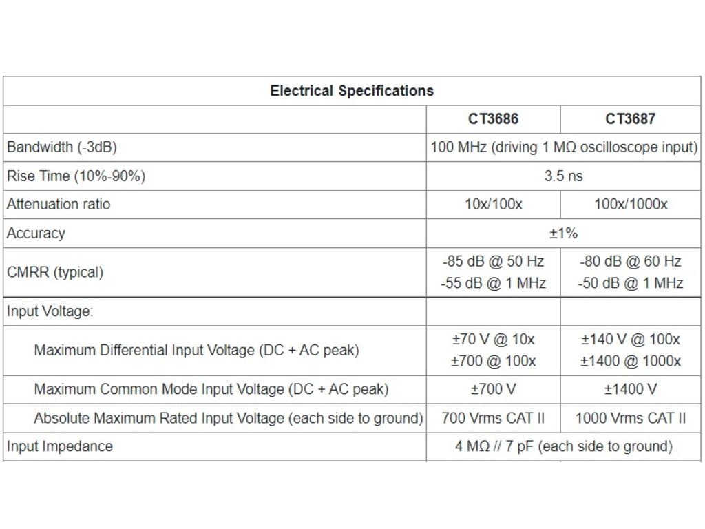 Model CT3687 features 100x/1000x attenuation settings, 100 MHz bandwidth and ±1,400 V maximum differential.