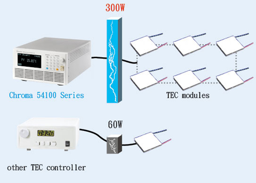 Chroma’s Advanced TEC Controllers can deliver 150W or 300W TEC driving power, satisfying needs from small to large platforms. In typical applications, many pieces of high power TEC modules can be driven by a controller output. For the cost of every driving power, Chroma offers very competitive solutions.