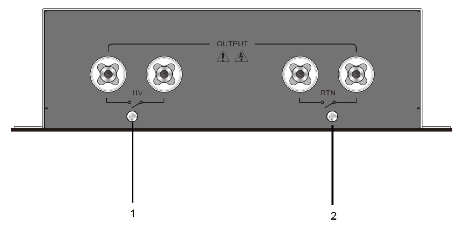 2 - CONTACT Short-circuit Signal: These two contacts will be short-circuited while test cables of OUTPUT HV and RTN terminals are connected to DUT exactly. The maximum short-circuited current flows through these two contacts which should be less than 0.5A.