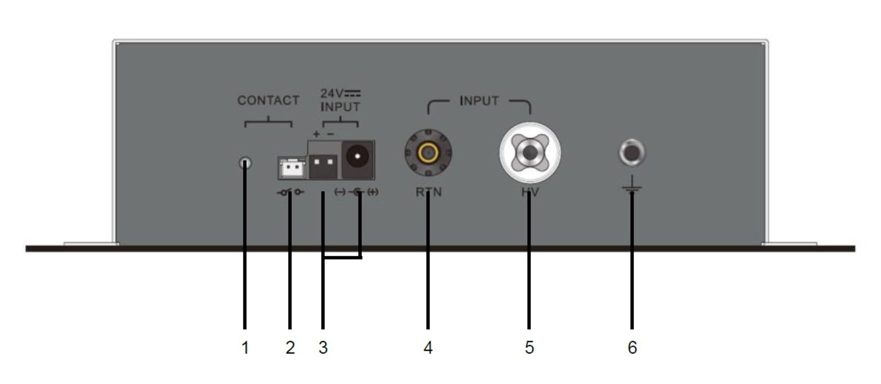 5 - HV Input Terminal: Connect the HV output terminal of the Safety Analyzer or HIpot Analyzer to this HV input terminal.