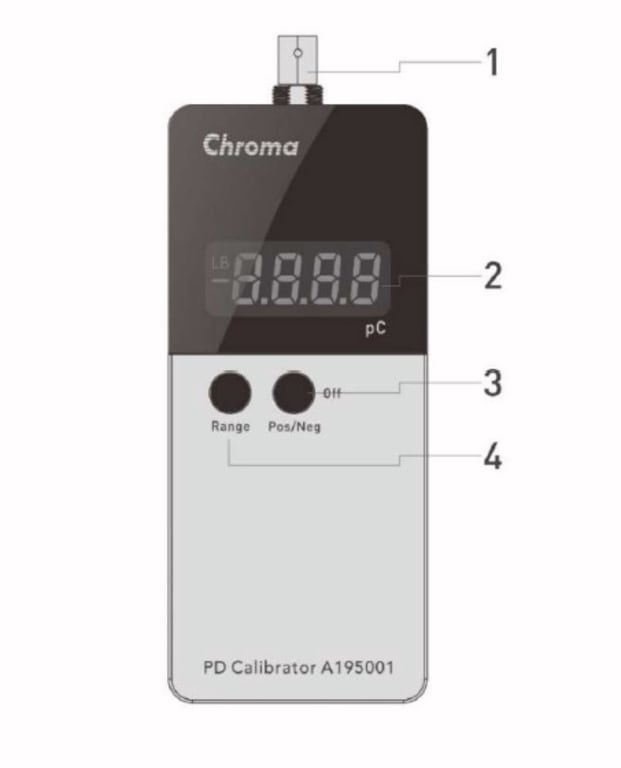 (3) Pos/Neg switch/power off button: Switches the PD output polarity or power off the calibrator.