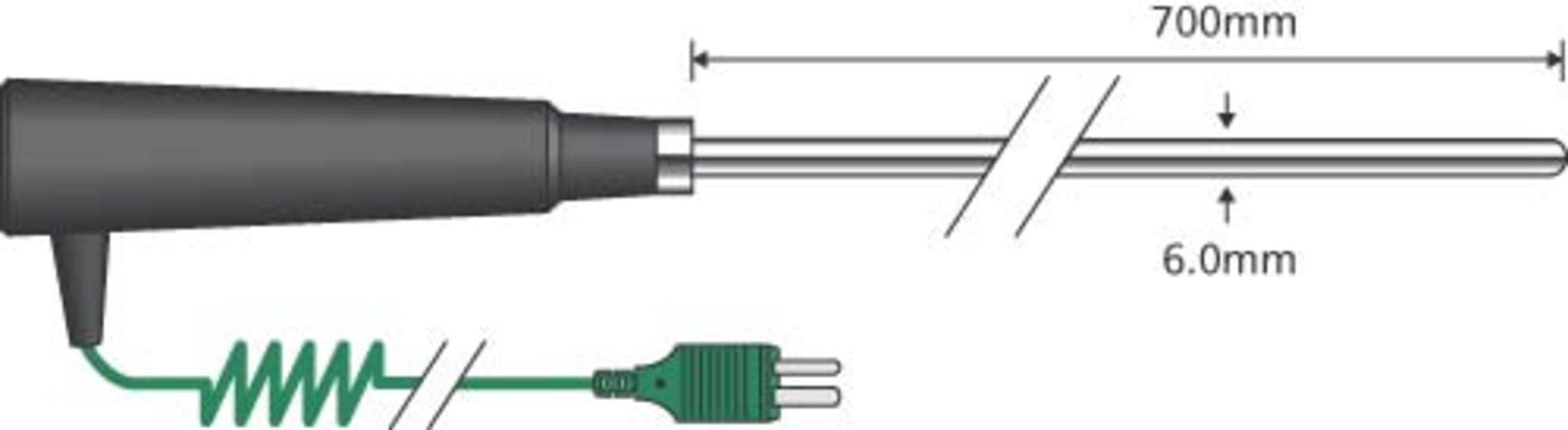 The AK24M Semi-Flexible Air Probe has a Type K Thermocouple sensor and is designed for measuring temperatures of up to +1100°C / +2012°F, fitted with a 1m curly cable. The AK24M Semi-Flexible Air Probe is fitted with a 2-Pin Sub-Miniature connector, to provide a quick and easy connection to your Thermometer. 6 Months Warranty.
