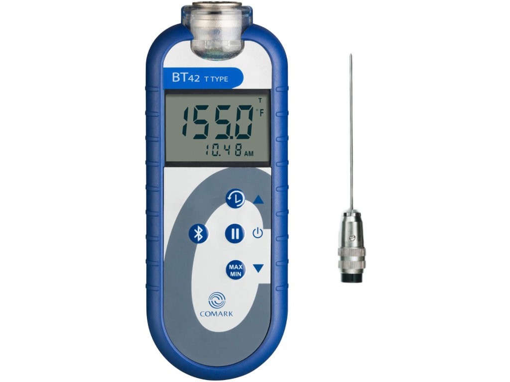 The New Comark Bluetooth BT42 Food Thermometer has all the great features you need in your busy kitchen, including MAX, MIN, and HOLD functions and, for the first time in a Comark Handheld Thermometer, Bluetooth for connection to the Comark Kitchen Checks App. Eliminate pen, paper, and dry-Labbing from your Kitchen with Comark Kitchen Checks App and BT42 from Comark.
