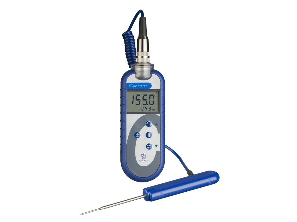 The C42KIT General Purpose Food Thermometer Kit comprises a C42F Type T Food Thermometer as well as a PT19L Thin Tip (Type T Thermocouple) Penetration Probe.