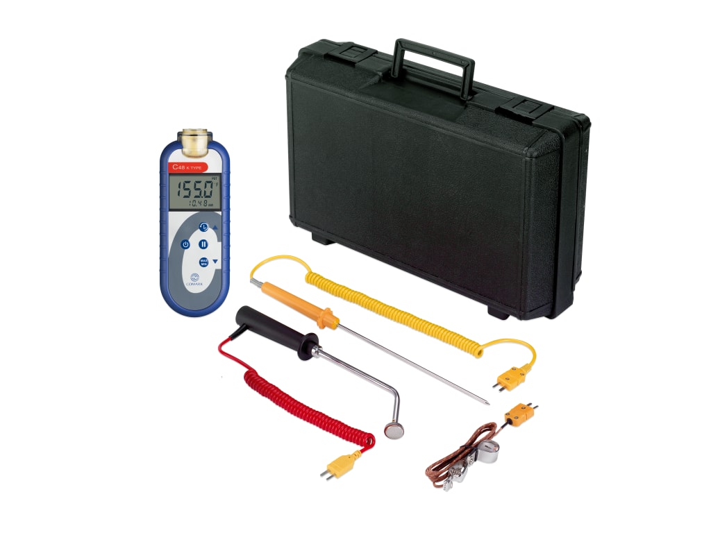 The C48/P14 Food Thermometer Kit is a simple to use, food thermometer kit containing a C48 Type K Thermocouple Food Thermometer for reliable and accurate temperature measurement, an ATT50 Heavy Duty Probe, an ATT29 Oven and Air Probe, an SK42M Surface Probe and an MC32 Hard Carrying Case.