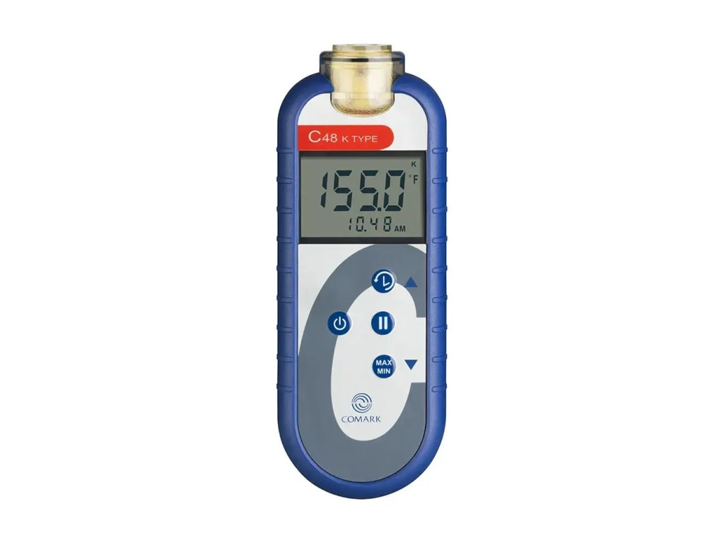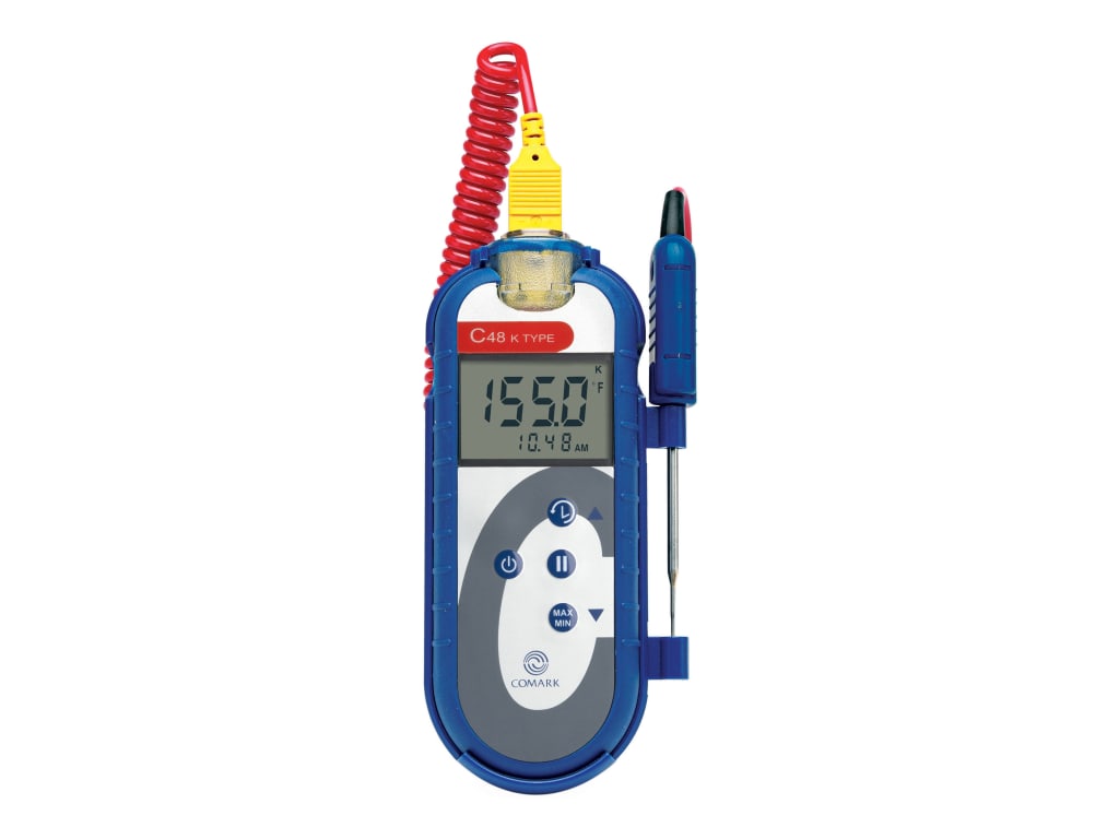 The C48/P15 Food Thermometer Kit is a simple to use, food thermometer kit containing a C48 Type K Thermocouple Food Thermometer for reliable and accurate temperature measurement, as well as a PK15M MicroTip Penetration Probe and a C20WB Wall Bracket/Stand.