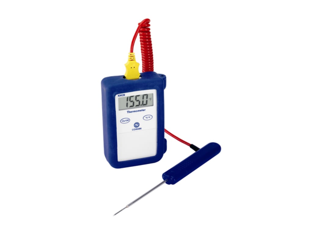 The KM28B Thermocouple Food Thermometer (Type K) is an accurate, hard-wearing instrument with a large temperature range, ideal for industrial food manufacture or commercial kitchen setting. It is supplied with a CRS/5 Protective Rubber Boot