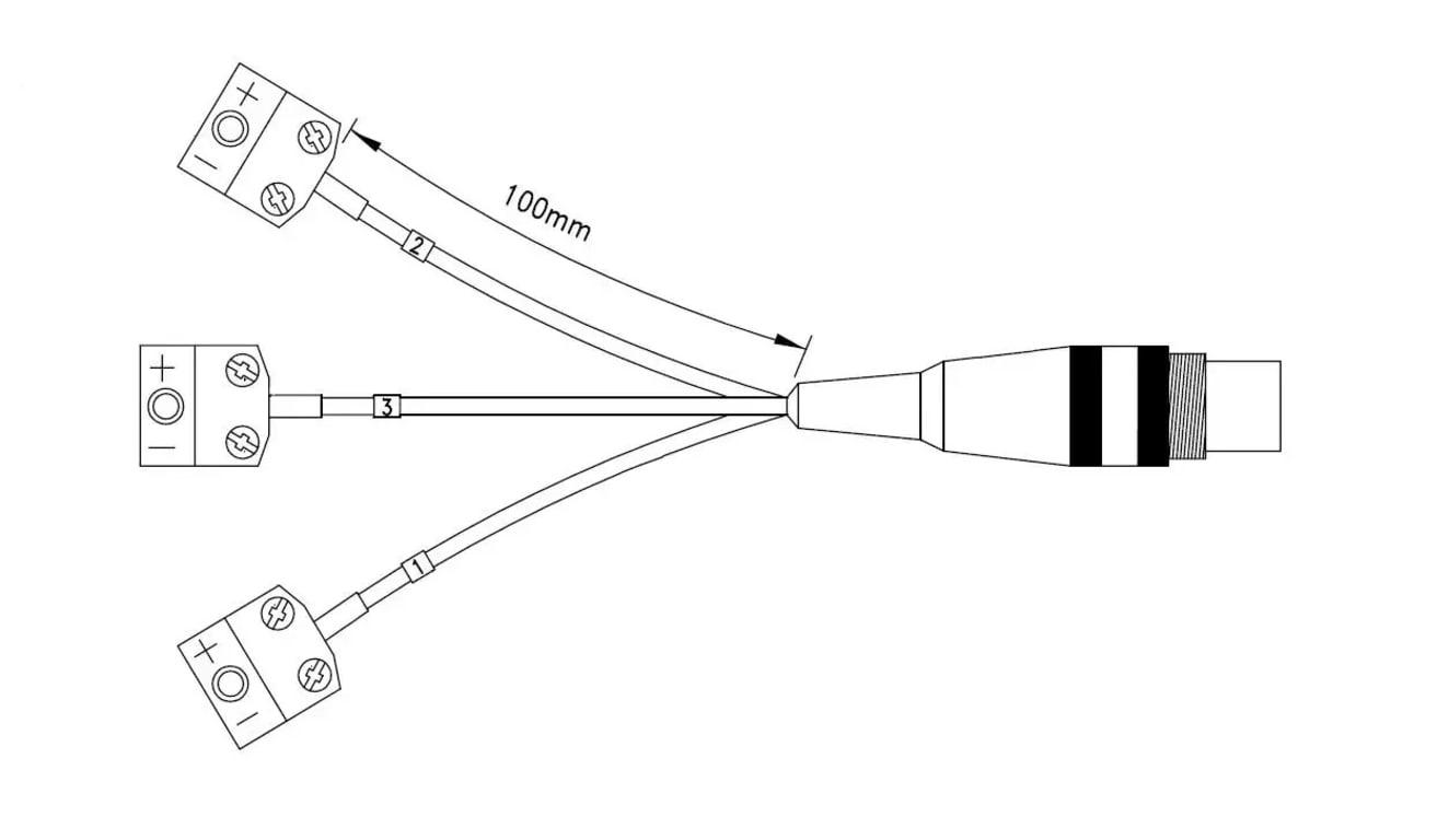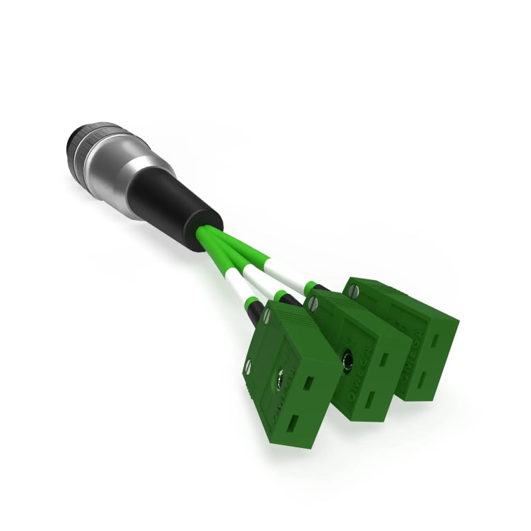 Connect a compatible Type K Thermocouple probe to each of the sub-min connector blocks to measure up to three different points of measurement via three channels. Each channel is marked on the cable for added convenience.