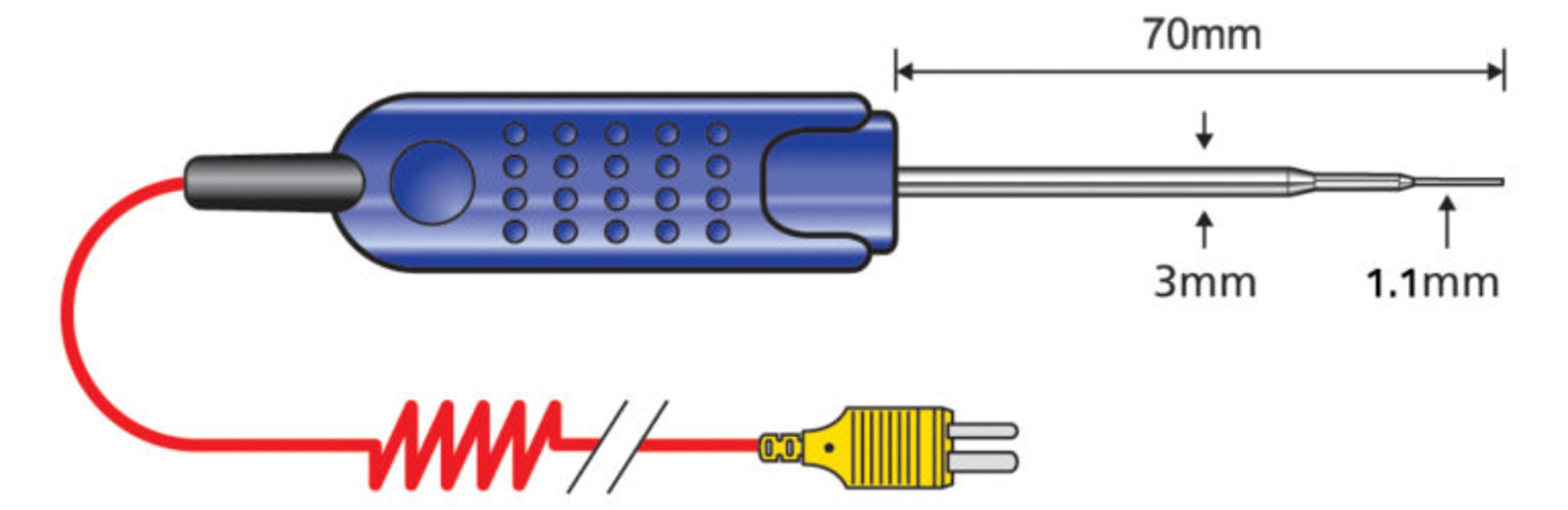 The PK15M MicroTip Penetration Probe is a Type K Thermocouple Probe for checking meat and food temperatures during cooking, fitted with a 1m curly cable. There is also BioCote Antimicrobial Protection in the probe handle to avoid the risk of cross contamination. The PK15M MicroTip Penetration Probe is fitted with a 2-Pin Sub-Miniature connector, to provide a quick and easy connection to your Thermometer.