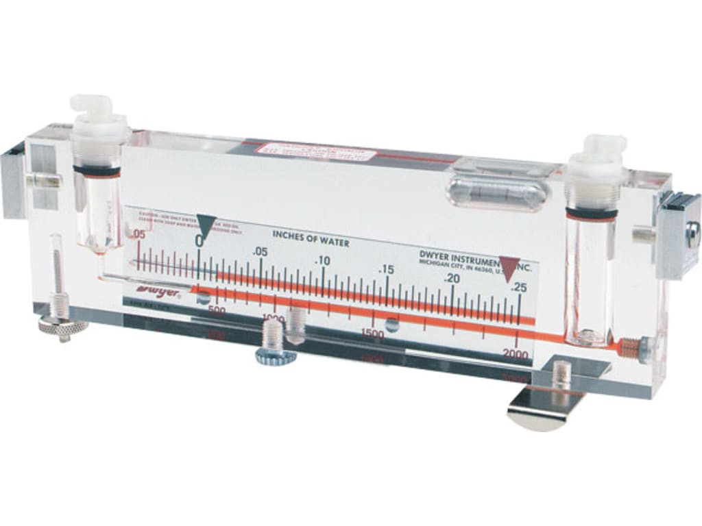 Designed to measure air velocity, static pressure, vacuum or differential pressure, where the additional range of the 400 Series gages is not required. Series 100 Gages offer superb accuracy combined with portability. The Dwyer® Durablock® precision-machined solid acrylic plastic construction, the wells, and inclined bore are machined to tolerances of ±.0002".