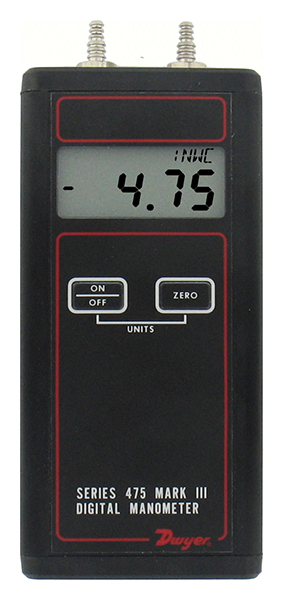 Dwyer Mark III Handheld Digital Manometer, 475-0-FM, 0-10 and w.c. (2.491 kPa) - OPEN BOX MISSING ORIGINAL PACKAGING