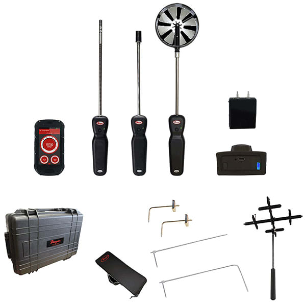 Air Quality Test Instrument Kit with UHH2 base unit, RP2 wireless hot wire thermo-anemometer, and UHH-BTG wireless mobile gateway in hard carrying case with NIST Certificate.