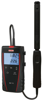 The Sauermann AQ110S Air Quality Meter measures the level of carbon dioxide (CO2) present in ambient air. This portable CO2 meter includes a temperature remote probe, 6.5" (2m) cable, and features functions such as Hold, Min, Max, backlight, change of unit, and configurable automatic switch-off. The AQ110S is supplied with a soft case and adjustment certificate.