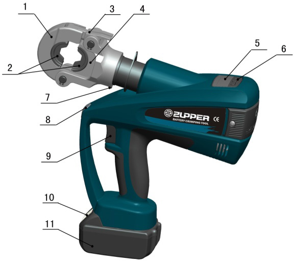 Battery Powered Hex Crimping Tool with die sets. APPLICATION: Micro computer control system-automatically detects pressure when crimping, with double safety protection. Pressure released automatic Function-tool. The tool is equipped with a double piston which is characterized by a fast approach towards the connector material, then a transfer to high pressure automatically by slower crimping. Crimping head can be smoothly turned by 350° around the longitudinal axis in order to gain better access to tight corners and other difficult working areas.