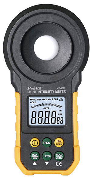 Whether you are a professional or amateur photographer, while shooting, you pay more attention to the surrounding illuminance rather than the setting, because this will help you take the best shot. Although the illuminance can be estimated by the photographer, there is a difference in perception between human and camera about the requirement for supplementing illuminance. This 5 difference will lead to a big contrast of the expected image effect against the actual one. In the face of this, do you wish to possess a light meter? When you intend to buy a house, you require both good location and indoor brightness during the day. So, do you wish to possess a light meter to measure the illuminance in every corner of the house? With the progress of human civilization, more and more people emphasize low carbon life. Architects tend to figure out how to bring more natural light into the house while putting up a residential building. However, in many cases, fluorescent lights will be used when the natural light is not enough. In response to the slogan of energy saving and emission reduction advocated by the state, we should use the fluorescent lamps based on the actual needs. So, a professional and convenient light meter can provide you with a reference regarding illuminance. The MT-4617 Light Intensity Meter has a friendly human-machine interface and can be activated by a simple press of keys. The buzzer activates upon key press to notify that it is effective. This light meter is able to measure the visible light produced by fluorescent lamp, metal-halide lamp, high voltage sodium lamp or electric incandescent lamp for a vivid and intuitive image display.