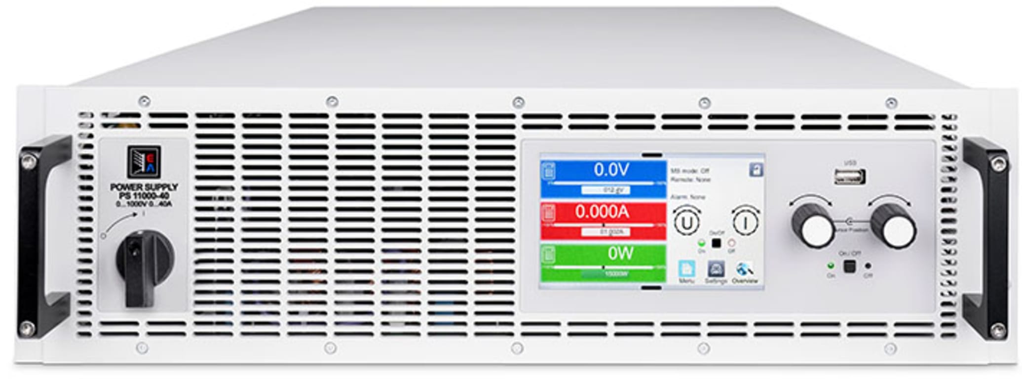 As standard EA devices are fitted with the most important digital and analogue interfaces and ports which are galvanically isolated. These include an analogue interface which can be parameterized for input and output, control and monitoring, of 0 - 5 V or 0 - 10 V for voltage, current, power and resistance, assorted inputs and outputs as well as USB and ethernet ports.