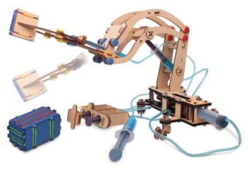 Explore the wonders of motion, friction, thrust, and propulsion! Hydraulic machines use the power of water pressure to carry out specific tasks. Build a fully functional hydraulic crane and introduce children to the fundamentals of hydraulic machines, crane mechanics, pressure, movement, and rack-and-pinion mechanism. Once assembled, kids can push the syringes to direct the crane, lift objects, and move them around. Learn how the power of water pressure can be used to carry out tasks in daily life. It can be painted or colored once assembled. Decorate with your own paints and markers and make it unique!