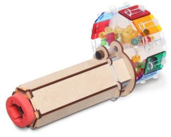 First designed by Scotsman Sir David Brewster in 1816, a kaleidoscope is not just another toy. It is a portal to a magical dimension where colors dance and wonders abound. Used as a source of inspiration by designers and artists, kaleidoscopes inspire creativity and introduce children to the wonders of light, color, and reflection. Peer into the fascinating world of patterns and designs. Build the kaleidoscope, fill its drum with colorful trinkets included in the kit, and explore the wonders of light and color. Decorate with your own paints and markers and make it unique!
