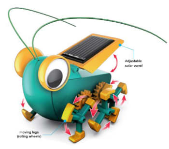 BugBot is ideal for a do-it-yourself science fair, after-school, or summer workshop project with the bonus gift of learning mechanical transmission and electrical motor theory. It's a wonderful instrument for the beginner enthusiast 8 years and up, and a gateway to ignite opportunities in fun learning. With direct sunlight, this little bug will keep strutting and strutting with more vigor than you could imagine.