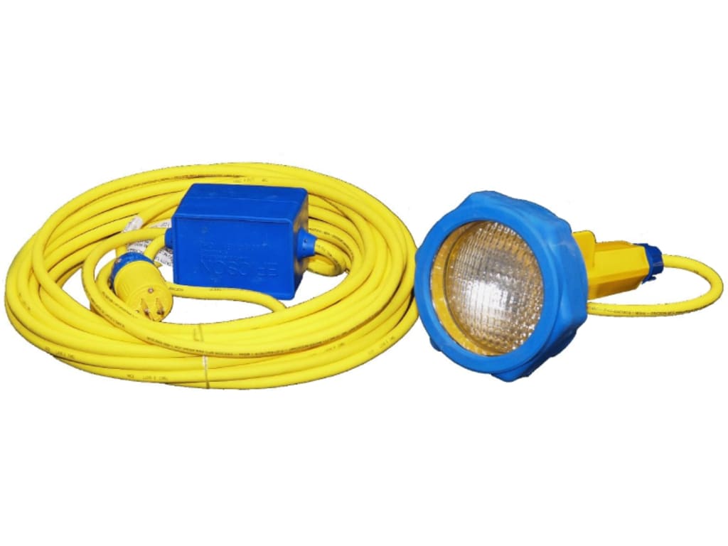 Ericson 1918LED-12 is a low voltage floodlight with 12V and 9W LED bulb type and does not include a switch. It has a 16/3 SOOW yellow cable with an inline transformer and NEMA 5-15 plug. It features an impact-resistant, non-glass lens for food and beverage processing environments. Its large rubberized cushion will not mar or scratch surfaces.
