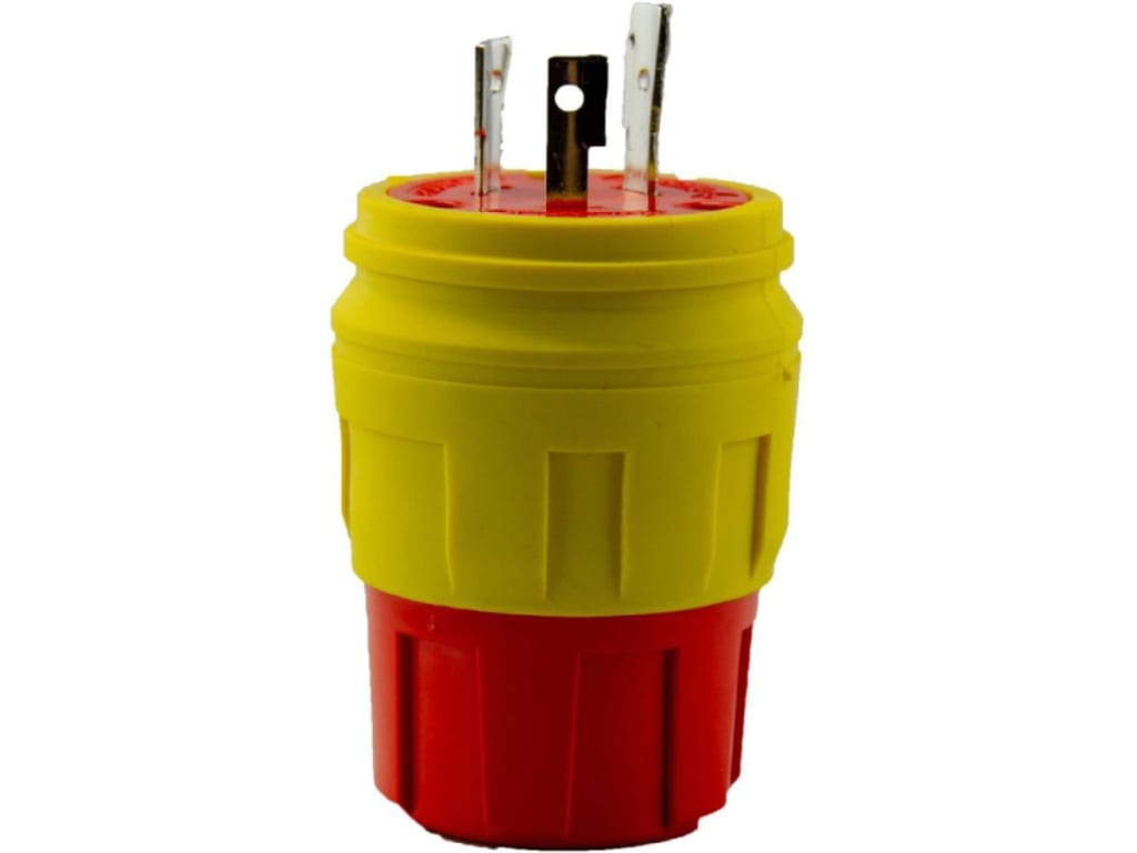 Ericson 2314-PW6P-AM is a plug, NEMA L7-20 configuration, and Perma-Kleen Antimicrobial, IP69K watertight yellow wiring device. It is a locking blade-style plug with 20A and 277V.