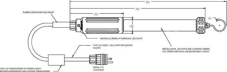 Ericson’s 910 LED Handlamp Series is enclosed within a shatter-resistant barrier. This is supported by a rugged, heavy-duty, rubberized, non-conductive, corrosion-resistant molded end cap & handle. Engineered and manufactured to withstand the harshest work environments, the LED task light provides a safe and reliable light at only 10 watts of power at 1440 lumens. Handlamp Options