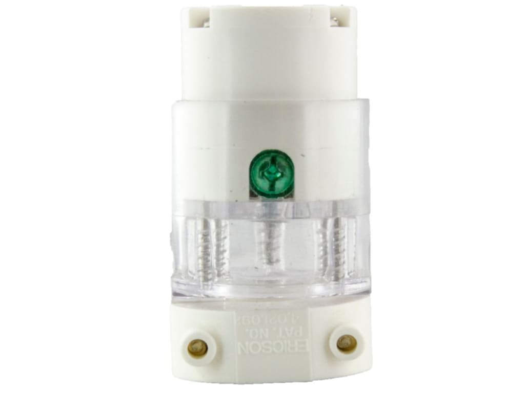 - White PBT and transparent polycarbonate housing identify this type which permits visual inspection of wiring terminations without disassembly. Impact resistance, and non-conductive. Cord clamp has a removable insert to accommodate #16/3 SJTW through #12/3 SO cord sizes.