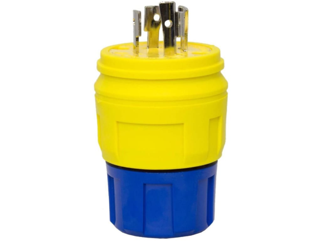 Ericson 2324-PW6P is a plug, NEMA L16-20 configuration, and Perma-Tite Extreme Grade, IP69K watertight yellow wiring device. It is a locking blade-style plug with 20A and 480V.
