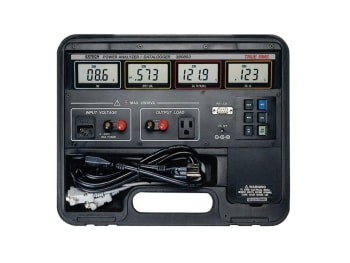 The 380803 is a True RMS power analyzer and data logger. Appliance Tester/Power Analyzer simultaneously displays the Wattage, Power Factor or VA, Voltage or frequency (Hz), and Current (Amps) of the device or appliance tested. The built-in data logger can store up to 1,012 readings or you can save data directly to your PC using the built-in RS-232 port and included software. Additional features include Max Hold, Data Hold, and overload protection. Battery or AC Adaptor Operation provides line isolation. Comes complete with 8 AA batteries, software, cable, power cord, AC Adaptor, and case. Applications: Measure and Audit power consumption of single phase devices Evaluate load performance under varying line conditions Demonstrate effectiveness of power conservation efforts Characterize device AC power requirements