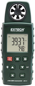 Convenient 4-in-1 Anemometer measures Air Velocity, Air Flow, Air Temperature, and Type K Temperature. Built-in low friction ball bearing mini vane wheel for high accuracy. The Type K temperature probe function measures surface temperature up to 2372°F (1300°). Features large dual LCD with backlighting, Data Hold, and Min/Max function.