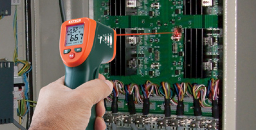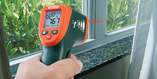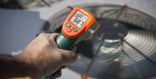 Non-contact InfraRed (IR) Thermometer measures from -4 to 752°F (-20 to 400°C) with built-in laser pointer to identify target area and improve aim. 12:1 distance to spot (target) ratio and adjustable emissivity for better accuracy when measuring temperature on different surface materials. Programmable high/low alarm alerts user visually and audibly when temperature exceeds set limits (audible alarm can be muted). MAX/ MIN function stores maximum and minimum readings with easy recall. Ideal for electrical troubleshooting, HVAC and automotive maintenance, and building insulation applications.