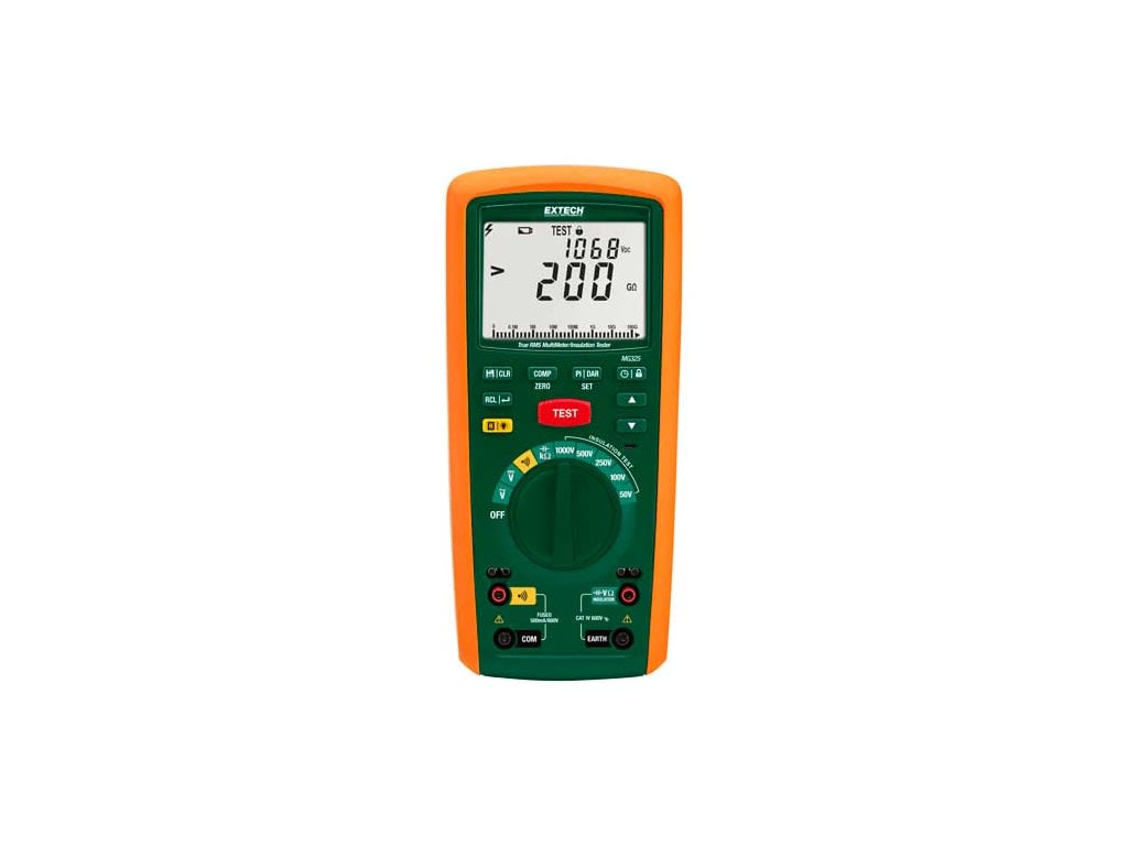 The MG325 True RMS Insulation Resistance CAT IV 600V DMM. The MG325 features a rugged design for heavy duty use. The MG325 measures Insulation Resistance, AC/DC Voltage, Frequency, Leakage Current, Low Resistance, Continuity, and Capacitance. Insulation Resistance tests are automatic ranging with 5 test voltages from 50V to 1000V. The MG325 can store and recall up to 99 measurements.
