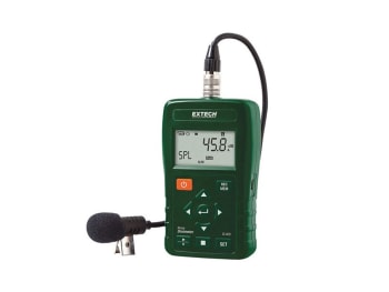For employees that are exposed to loud noise, sound level monitoring is essential to determine what protective measures are required. Perform OSHA and IEC Noise accumulation surveys to determine total sound exposure over an 8-hour period. The SL400-NIST is a compact, lightweight Dosimeter with USB interface and NIST Calibration designed to test noise exposure and provide noise surveys for compliance with OSHA, MSHA, DOD, ACGIH, and ISO standards. Includes PC software to control setup and retrieve stored events or analyze real-time measurements.