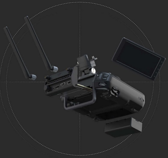 The CrystalSky monitor mounts to the Cendence remote controller via the Cendence Monitor Mounting Bracket.The Cendence remote controller’s antennas, PCB, mounting bracket, and battery are all detachable, making its hardware easily upgradable, allowing you to customize the controller for compatibility with future DJI aircraft.