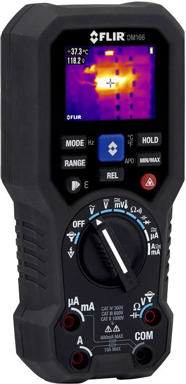 The FLIR DM166 is the most affordable multimeter with built-in thermal imaging - a must-have tool for commercial electricians, automation, electronics, and HVAC technicians. Featuring Infrared Guided Measurement (IGM™) powered by an 80 x 60 FLIR thermal imager, the DM166 visually guides you to the precise location of temperature anomalies and potential problems faster, more safely, and efficiently. The feature-packed multimeter is an ideal tool for troubleshooting and diagnosing complex issues in both high-voltage and low-voltage applications.