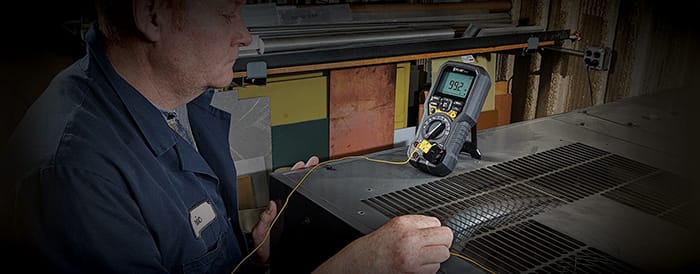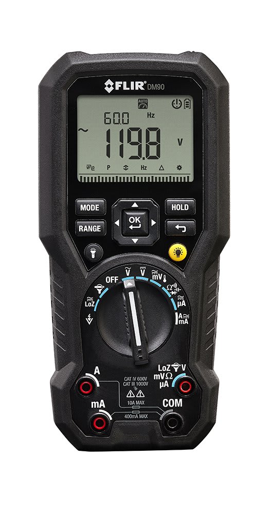 The DM90 is an affordable True RMS digital multimeter with a Type K Temperature function, an ideal tool for electricians, service technicians and HVAC professionals to have on the job. Equipped with rich features including LoZ, Variable Frequency Drive (VFD), and uA current measurement capability, the DM90 gives you trusted readings to troubleshoot and repair a wide range of electrical and electronic systems. The DM90 is shipped fully tested and calibrated, and with proper use, will provide years of reliable service.