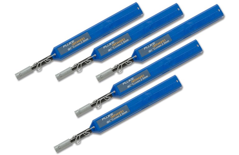 The Fluke Networks FNC-IBC-2.5mm OneClick Cleaner is used to clean SC, ST, FC and E2000 connectors with either UPC or APC polished ferrules. Unlike traditional swab cleaners that rely on the technique of the user, the IBC OneClick Cleaners provide consistent cleaning every time. The user can easily engage the cleaner using a simple push motion and the user will hear a “click” sound when the process is completed. With the click of a button, any fiber installer or data center technician can clean up to 500+ fiber ports. These cleaners are designed to fit into pockets without contamination from dirt and grease.