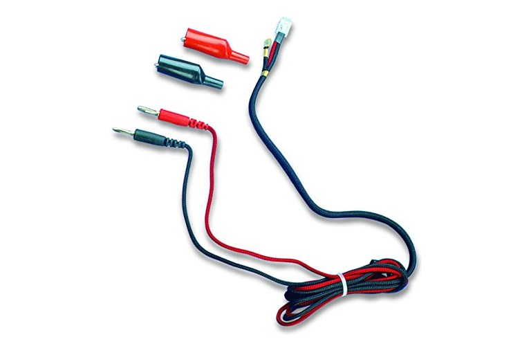 The Fluke Networks P1980003 line cord set with banana jacks and alligator clips is for use with a lineman's hand-held test set for testing insulated telephone wires. This set is compatible with the Fluke Networks TS19 test set.
