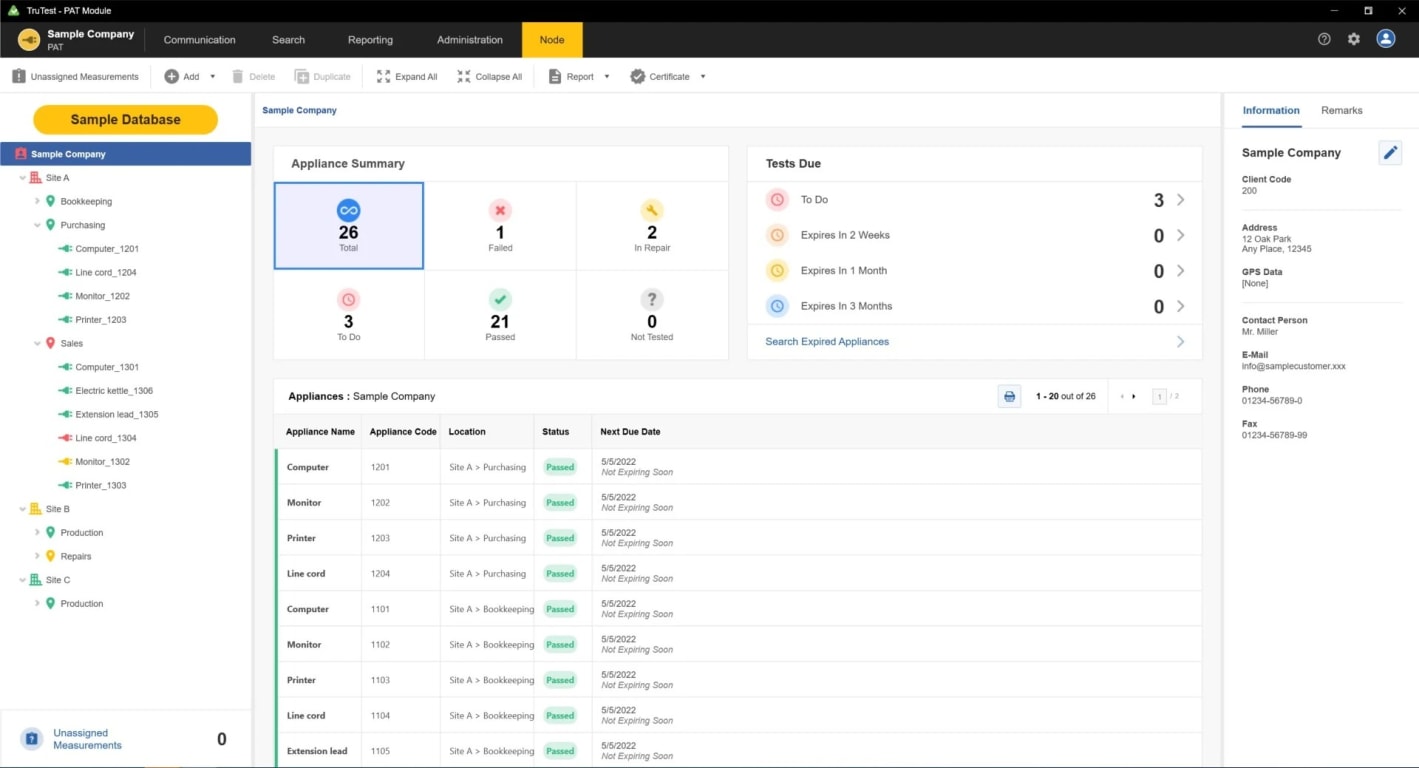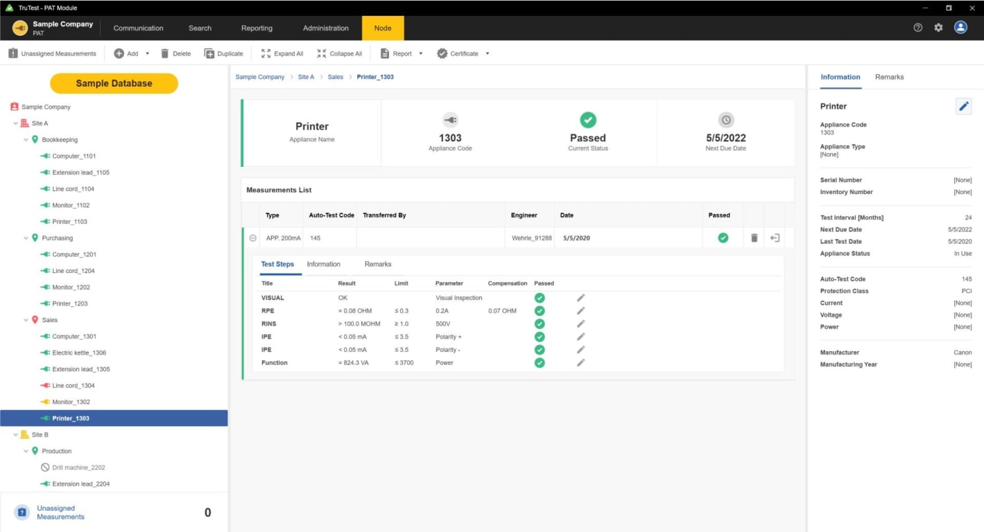 Fluke TruTest Software is designed to eliminate the hassle associated with traditional electrical system data management and reporting. Whether you are testing fixed wire installations, or appliances in an office, verifying repairs in a workshop, or performing annual inspections, proper data management is critical for producing easy-to-understand reports for clients. Compatible with a growing list of Fluke and Beha-Amprobe test and measurement devices, TruTest Software allows you to quickly and easily import measurement results directly from your test instruments, manage files transferred from instruments, or manually enter data as needed.