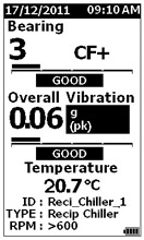 - A four-level severity scale and onboard processor calculate bearing condition and overall vibration using easy-to-understand textual alerts (Good, Satisfactory, Unsatisfactory, Unacceptable).