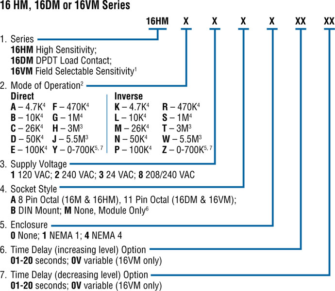 16VM Field Selectable Sensitivity, Direct: 0-700K, 240 VAC, 11 Pin Octal, NEMA 1-Note:Price is for 10 Units