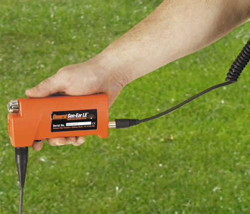 Finding the leak starts with a quality Ground Sensor. It locates leaks through hard surfaces, concrete,tile, etc. Threaded nipple accommodates sectional probe rods or magnet. Wind proof, shock resistant housing protects against handling noise interfering with locating process.
