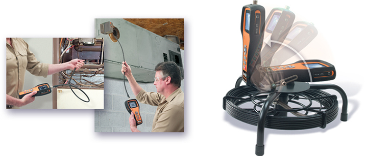 The Micro-Scope™ reel carries up to 100 ft. of micro push rod with a color camera, giving you the ability to inspect 1-1/2” to 3” drain lines and many toilet traps.